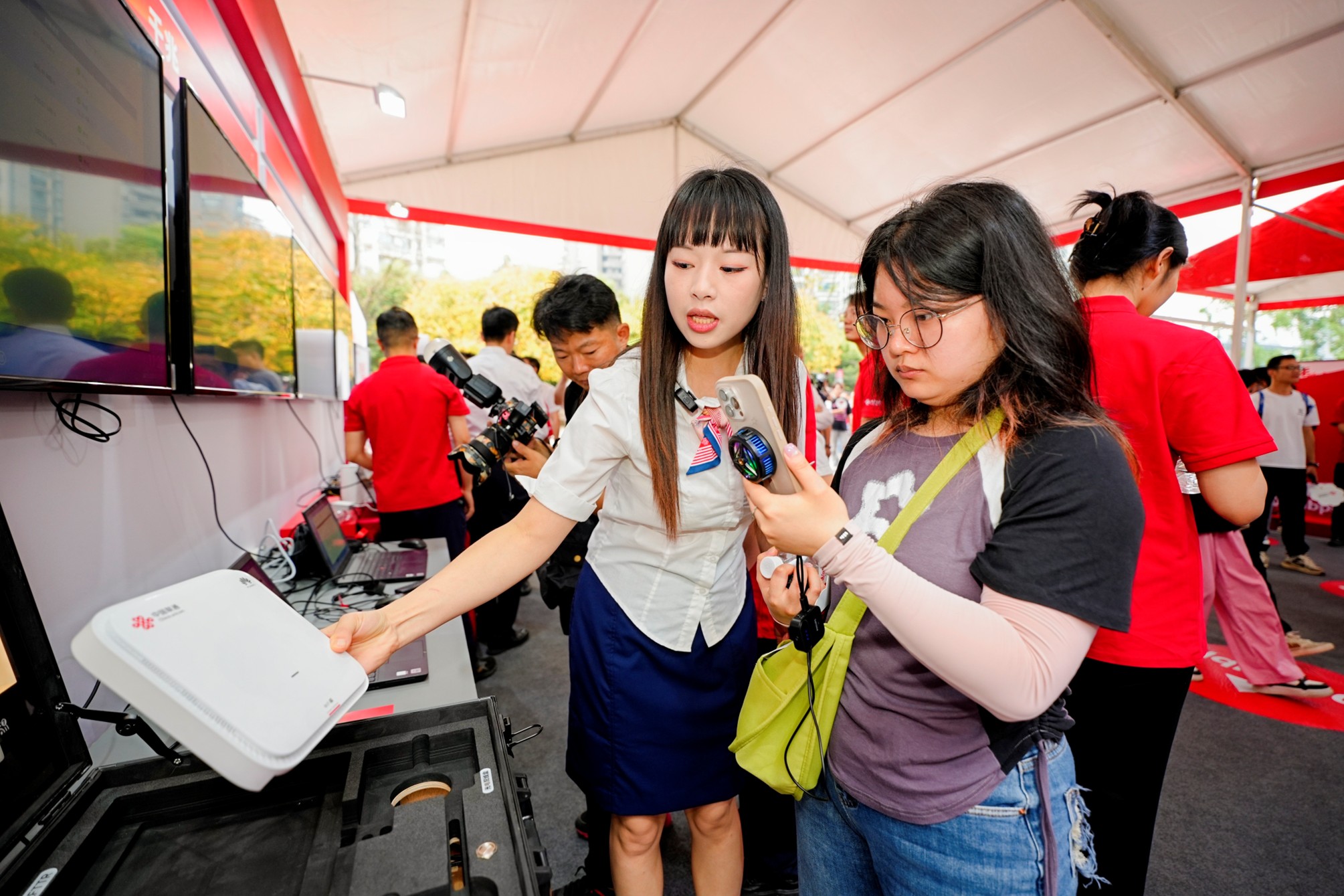 在成都高新招商花园城外广场,科技感十足的互动主题区域形成完整的万兆技术体验闭环。万兆网络实测区通过动态测速对比,现场演示了10000Mbps的下载速率,一部8K电影下载仅需1分钟。